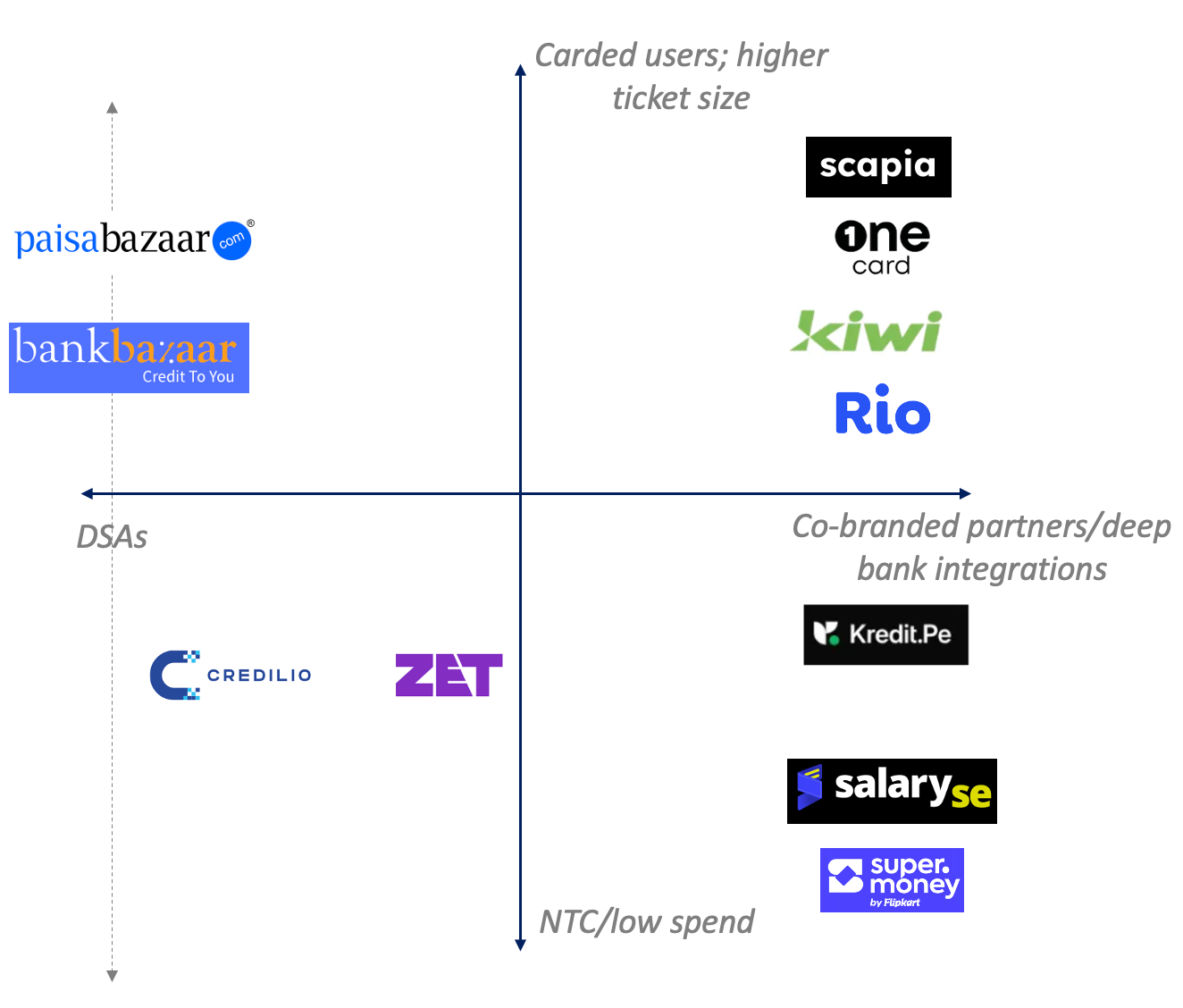 These higher multiples reflect confidence in unit economics, upside from cross-sell, and potential to lead a new category like Credit-on-UPI or secured cards.
